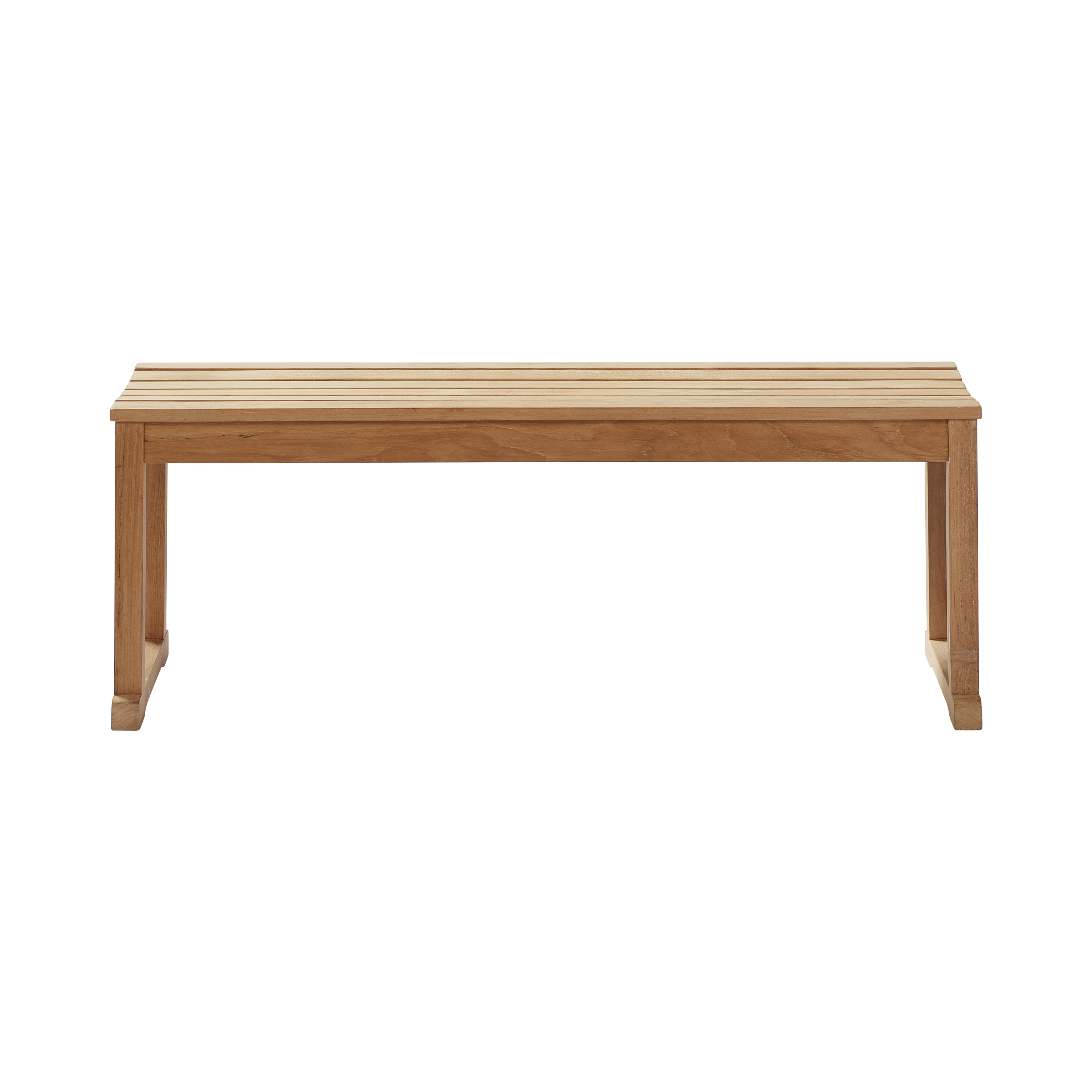 En harmonisk teakbænk med rene linjer og en rolig, naturlig udstråling – perfekt til øjeblikke med hverdagsro, hvile og nærvær, både inde og ude.