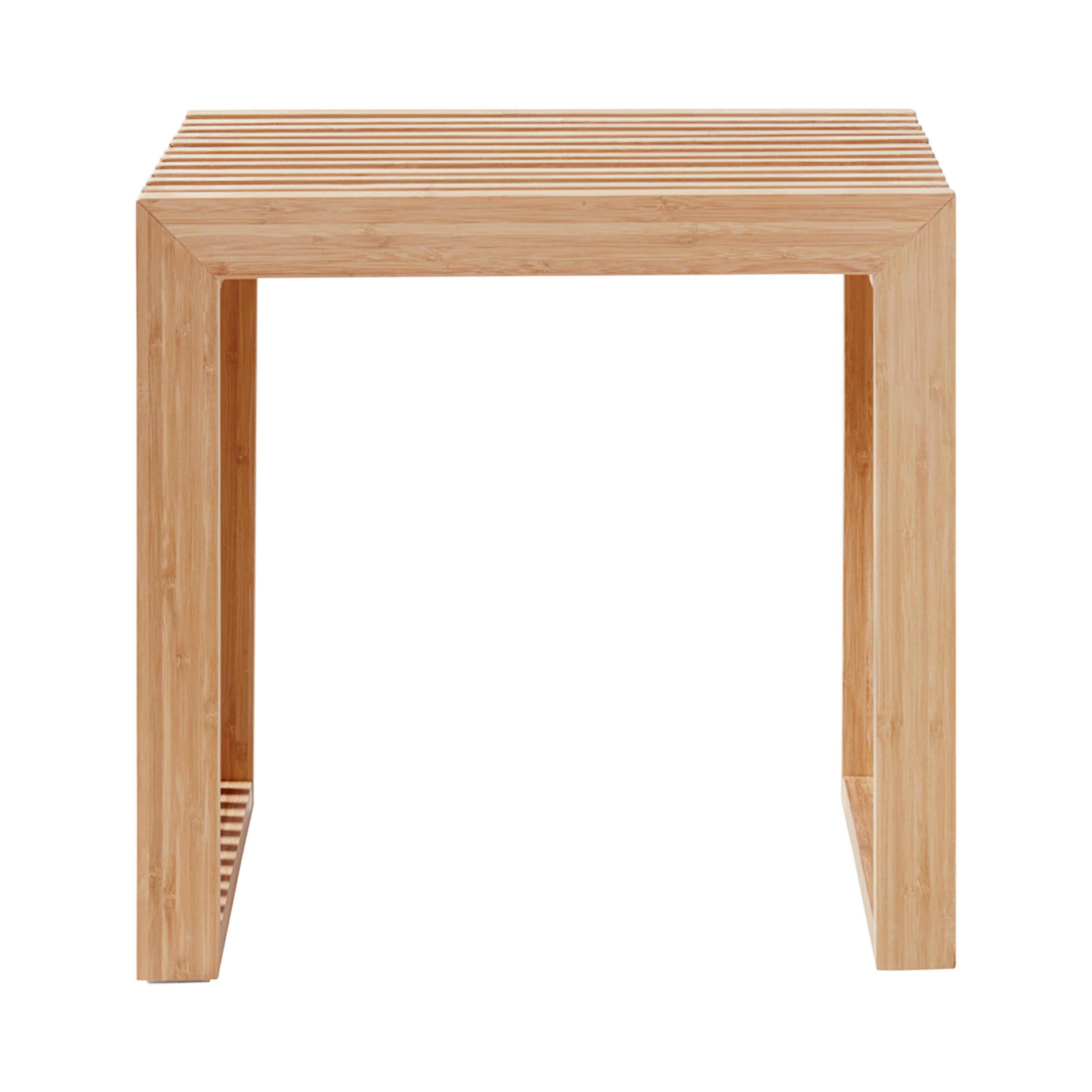 Skamlen er fremstillet i bambus – et fornybart naturmateriale med en varm glød og naturlig styrke, som gør den både holdbar og let i udtrykket.