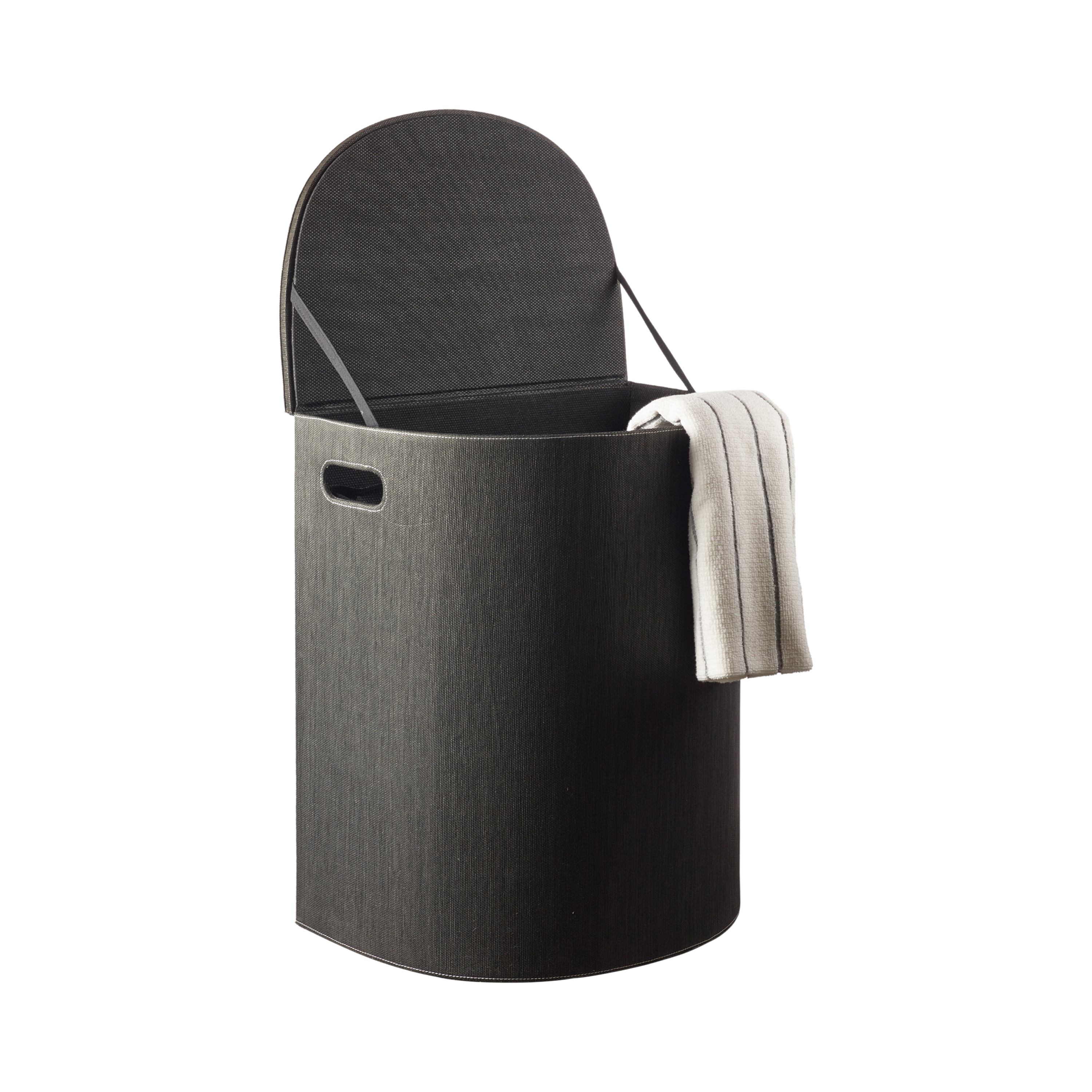 Den rene, sorte farve tilfører grafisk ro og gør vasketøjskurven let at kombinere med andre materialer og farver i indretningen.