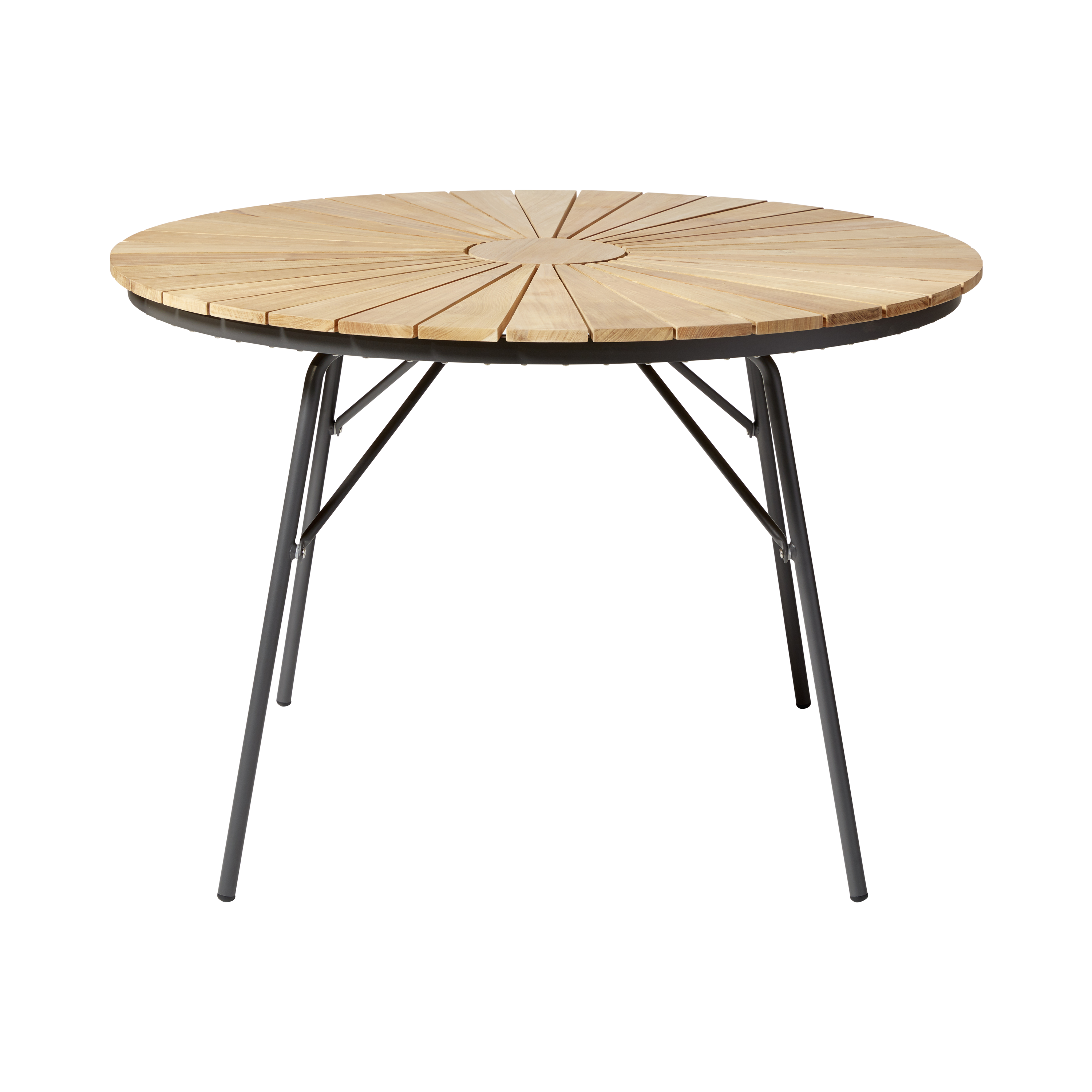 Ellen bordet er det naturlige midtpunkt i serien – et rundt bord med let og klassisk udtryk, der passer lige godt til terrassen, sommerhuset eller haven.