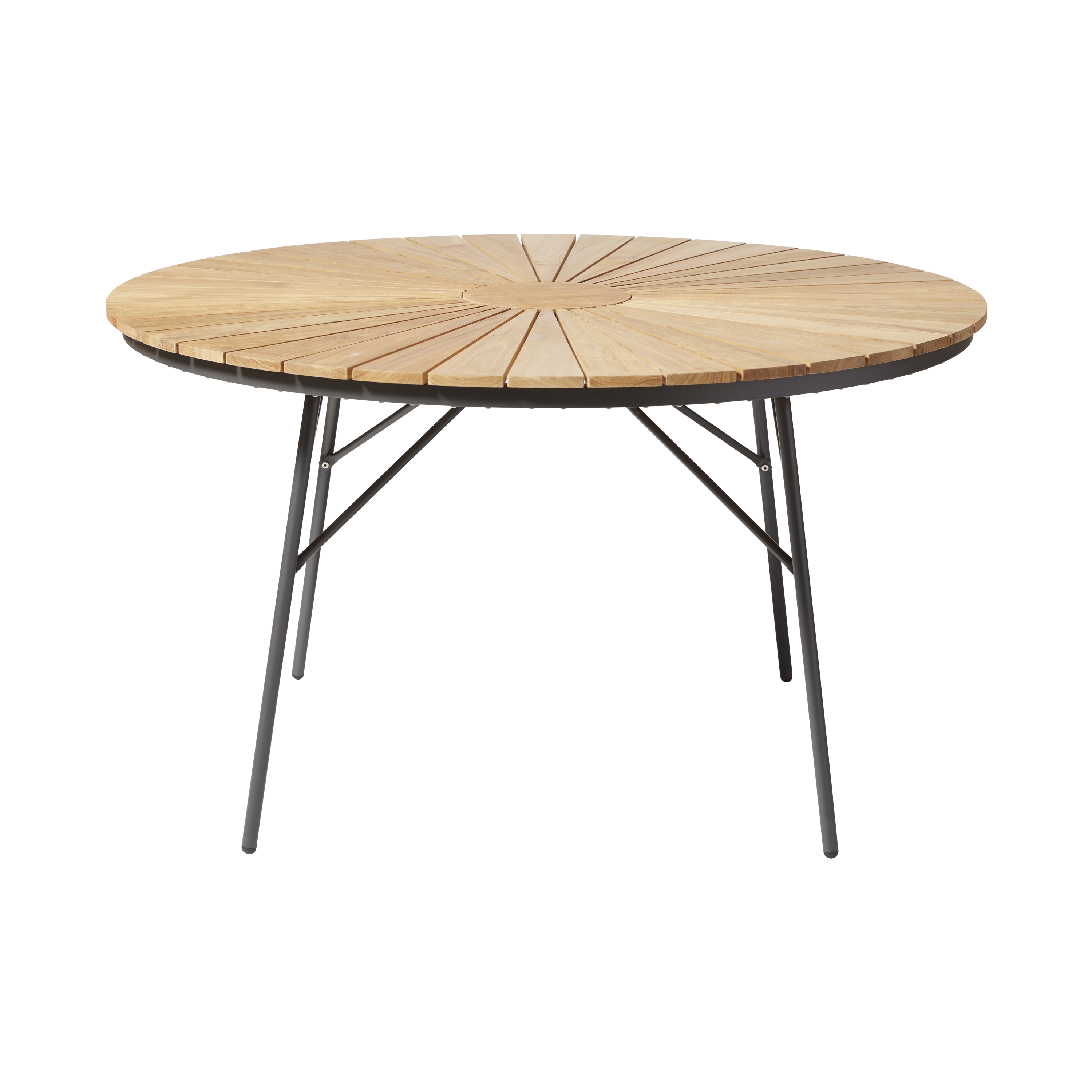 Ellen bordet er det naturlige midtpunkt i serien – et rundt bord med let og klassisk udtryk, der passer lige godt til terrassen, sommerhuset eller haven.
