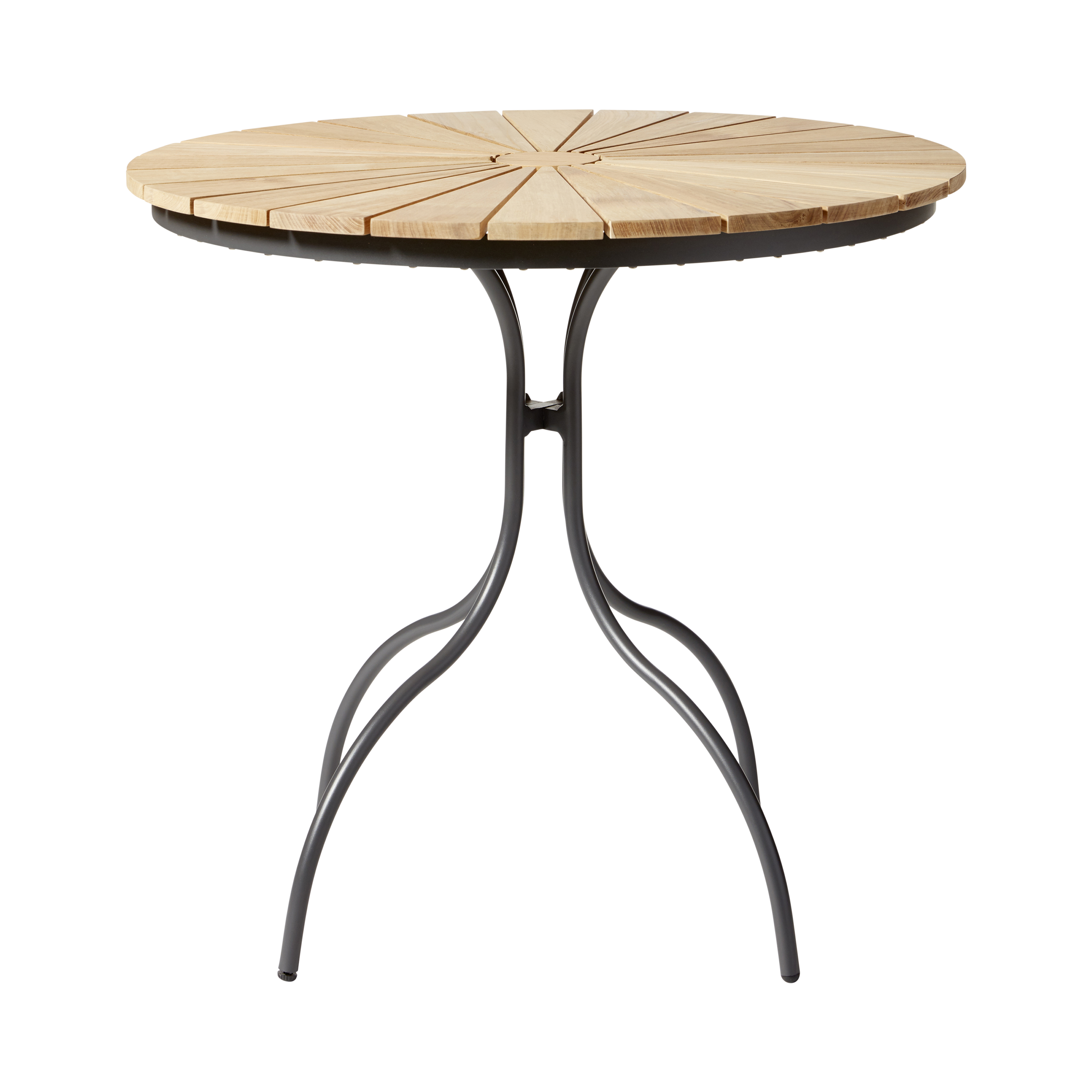 Cafébordet er 80 centimeter i diameter – med antracitfarvet stel og plads til to, tre personer. Et bord, der passer perfekt til altaner, små terrasser og caféer, hvor pladsen er begrænset, men atmosfæren betyder alt.