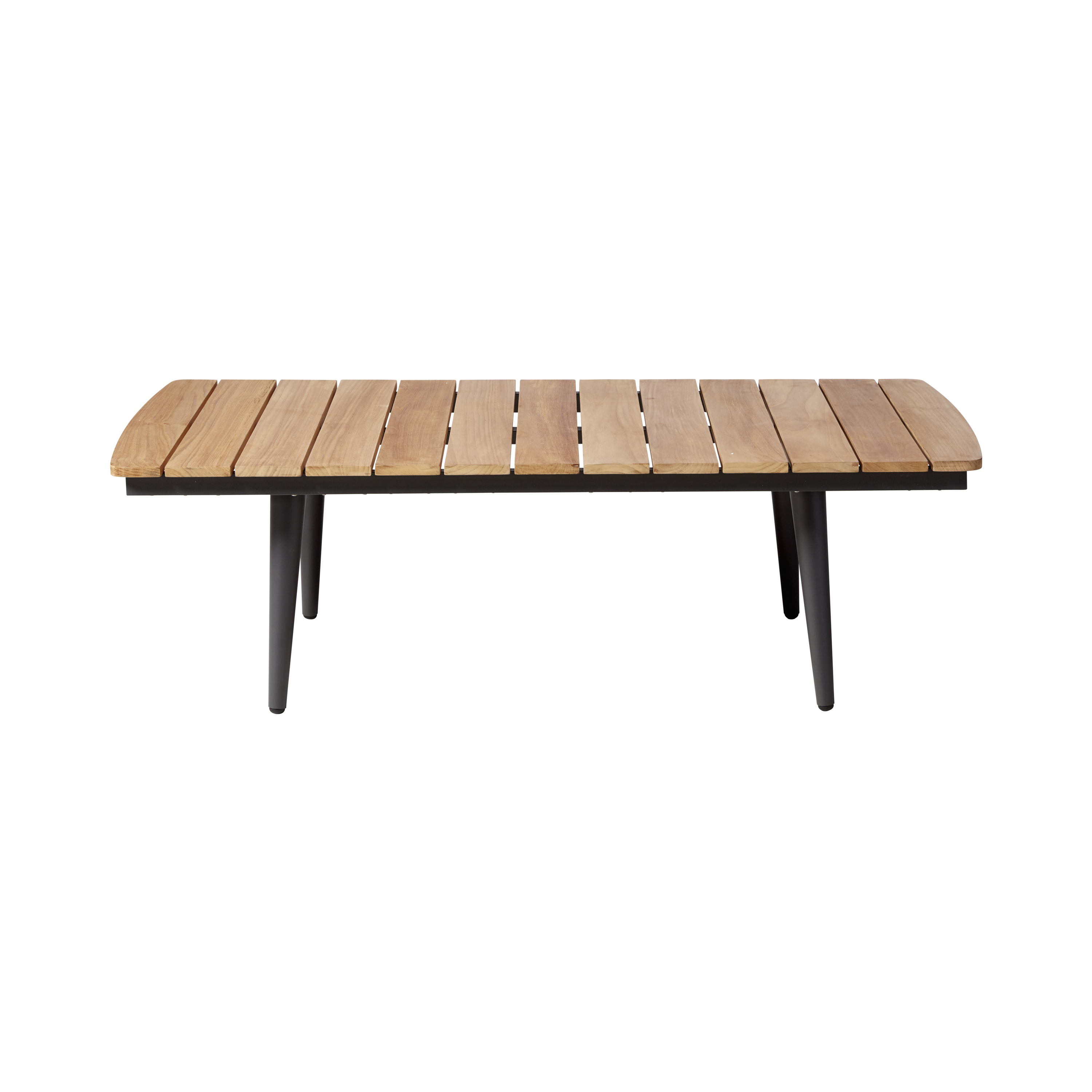 Et stilrent og funktionelt bord, der kombinerer antracitgråt aluminium for lethed og holdbarhed med en bordplade af eksklusiv teak.