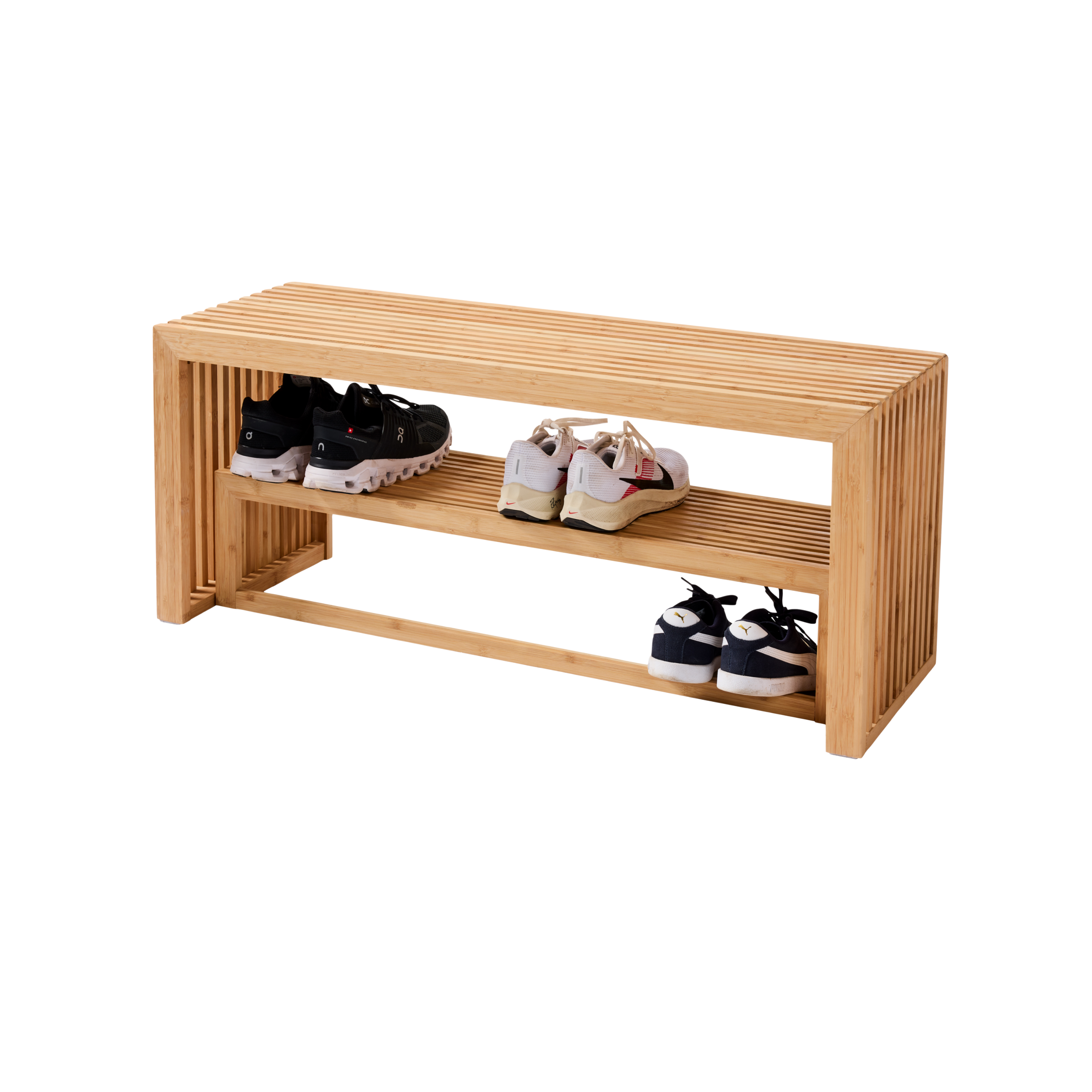 Rib multifunktionel bænk med opbevaring - bambus