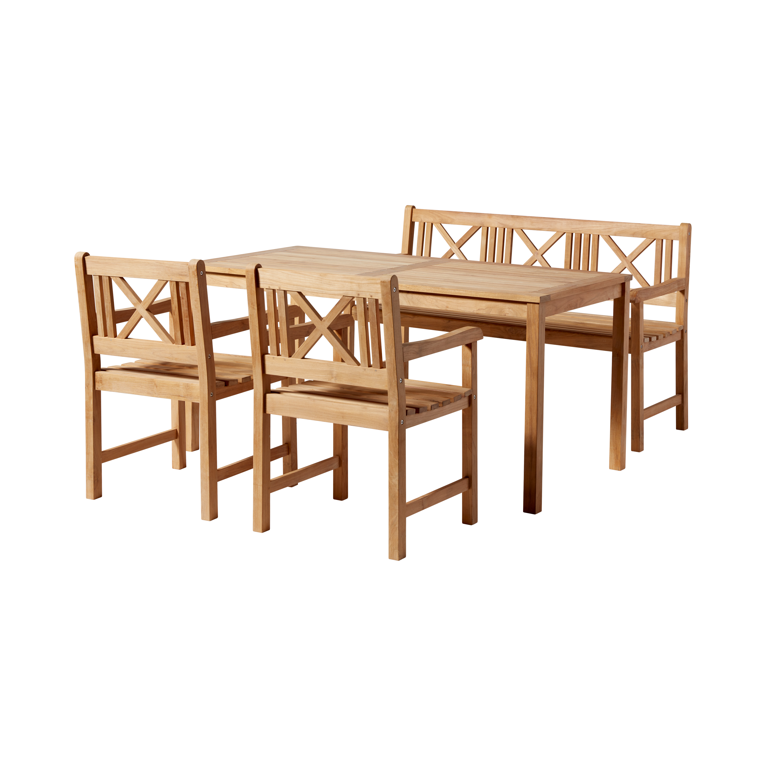 Et klassisk havesæt i teak, skabt til fællesskab, nærvær og hverdagsliv i det fri.