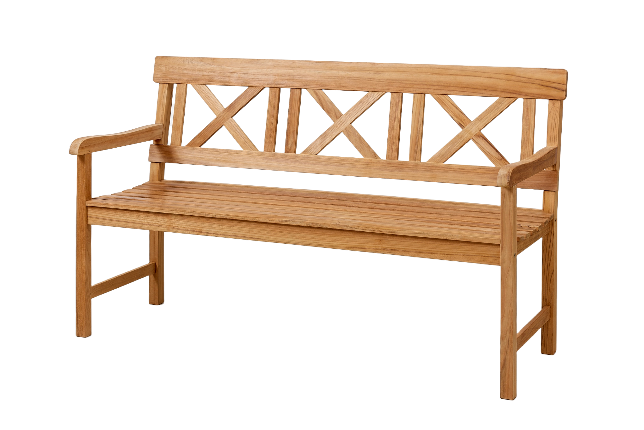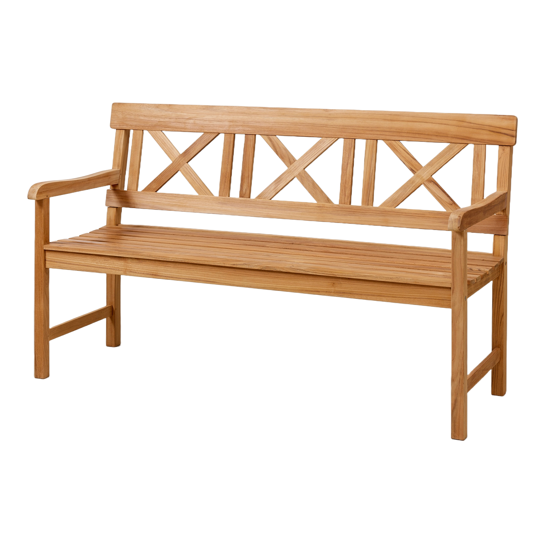 Sofiero-bænken findes i teak og i hvidmalet mahogni. Her er den i teak.