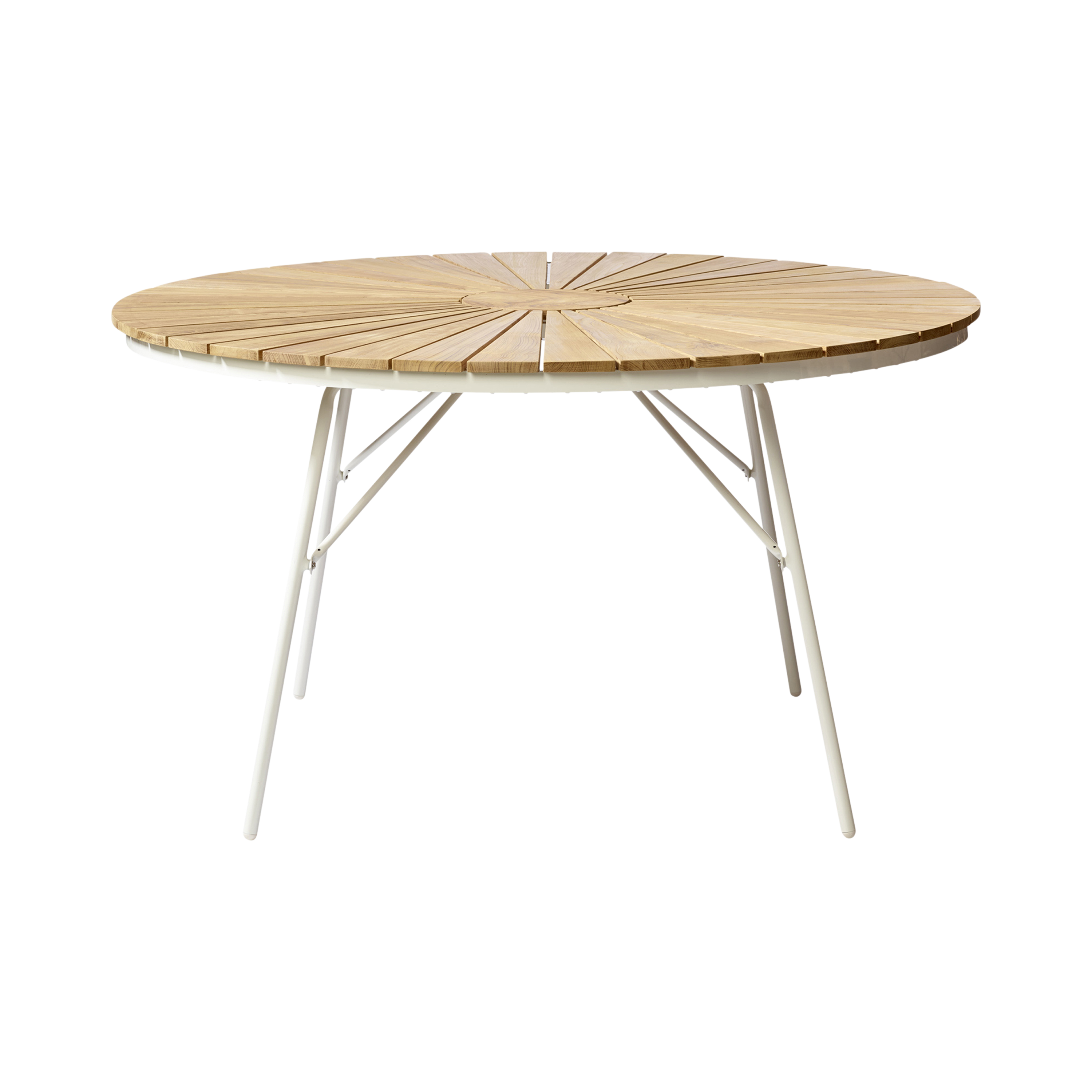 Ellen bordet er det naturlige midtpunkt i serien – et rundt bord med let og klassisk udtryk, der passer lige godt til terrassen, sommerhuset eller haven.