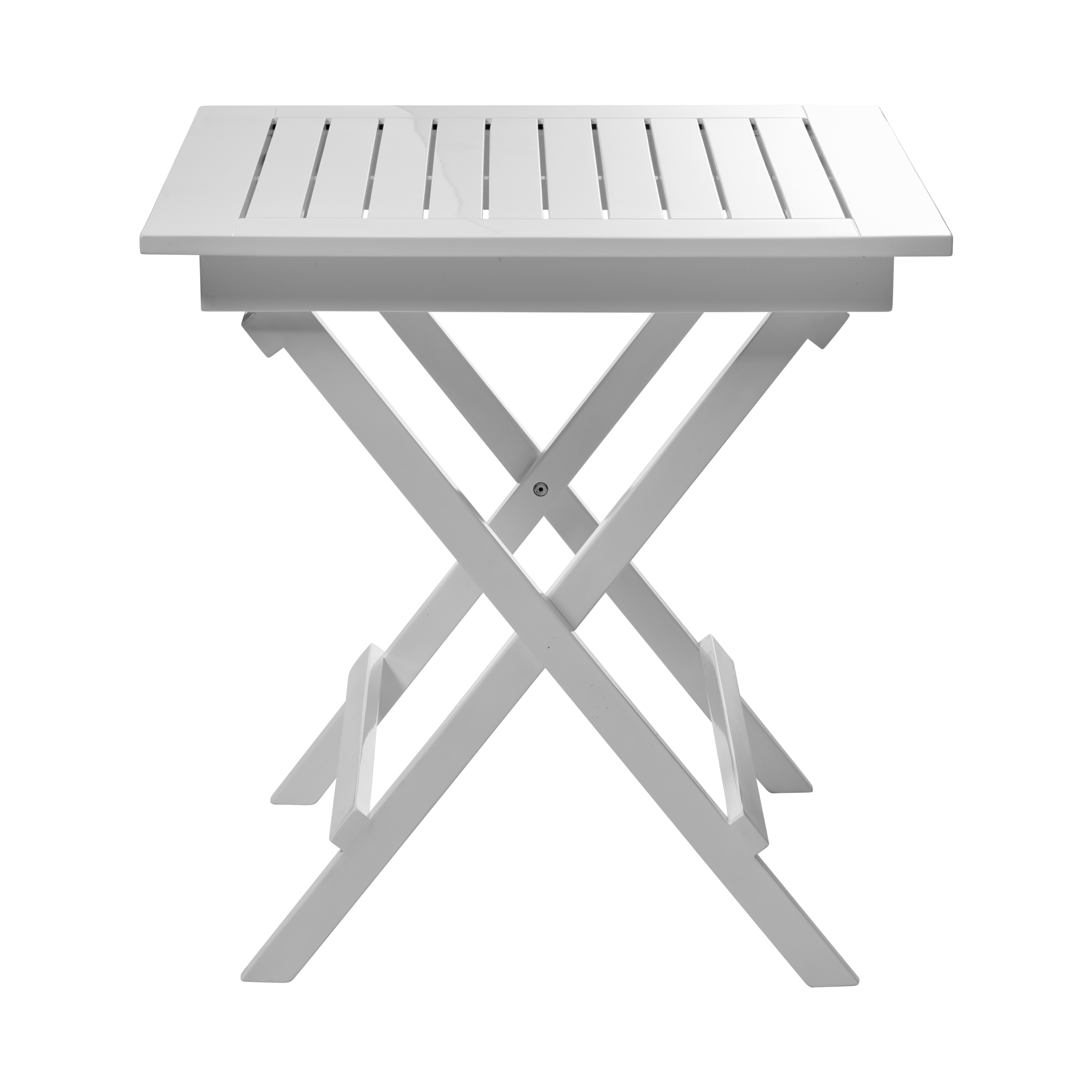 Et let og elegant foldebord i hvidmalet mahogni, ideelt til små altaner, kompakte terrasser og intime uderum, hvor fleksibilitet og nordisk enkelhed er i fokus.