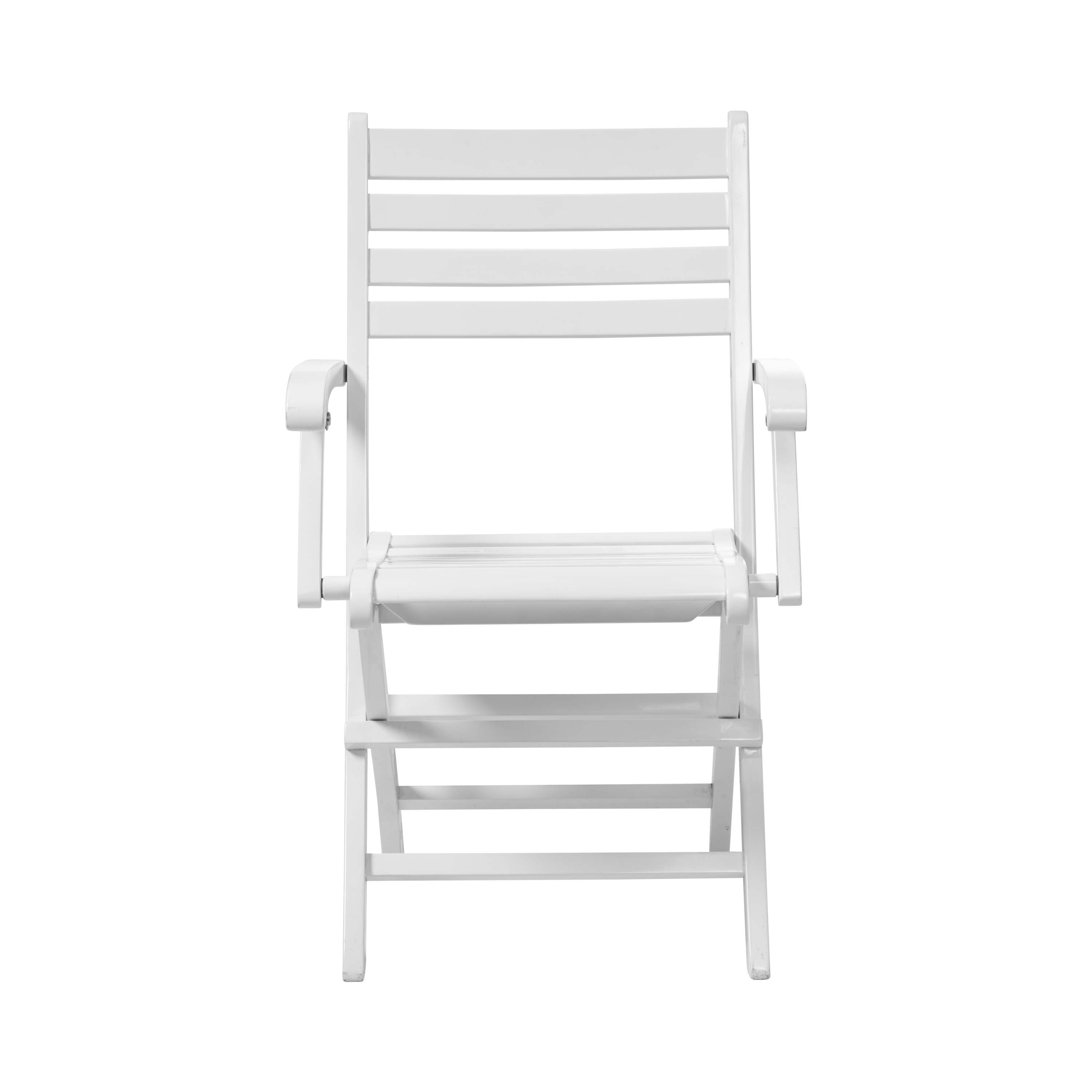 En let og harmonisk foldestol i hvidmalet mahogni, skabt til uderum med begrænset plads – fra altaner til små terrasser – hvor fleksibilitet og nordisk enkelhed gør hele forskellen.